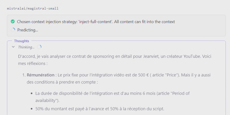 La réponse de Mistral / Magistral toujours en local basé sur le contrat fourni