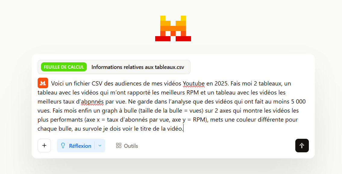 Tu es créateur, pas data analyst ? Mistral va devenir ton meilleur ami grâce à Le Chat. Cette IA française est bluffante pour le raisonnement, pour l’analyse de données et pour la rapidité de ses réponses en mode “flash”.