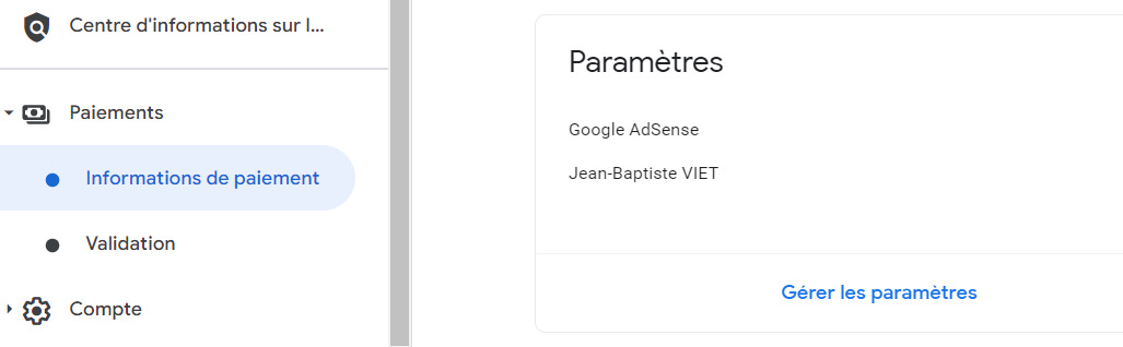 Il faut cliquer dans AdSense sur Paiements > Informations de paiement, scroller en bas jusquâĂ voir âGĂ©rer les paramĂštresâ