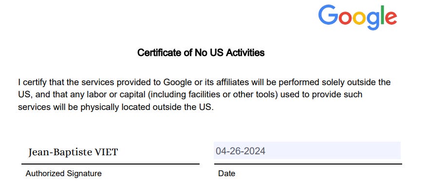 Certains mâont mĂȘme contactĂ© en privĂ© pour mâindiquer que pendant que leur formulaire fiscal W-8 BEN Ă©tait en cours de validation depuis 10 jours, Google leur avait prĂ©levĂ© 24% de leurs revenus AdSense mondiaux. đ±