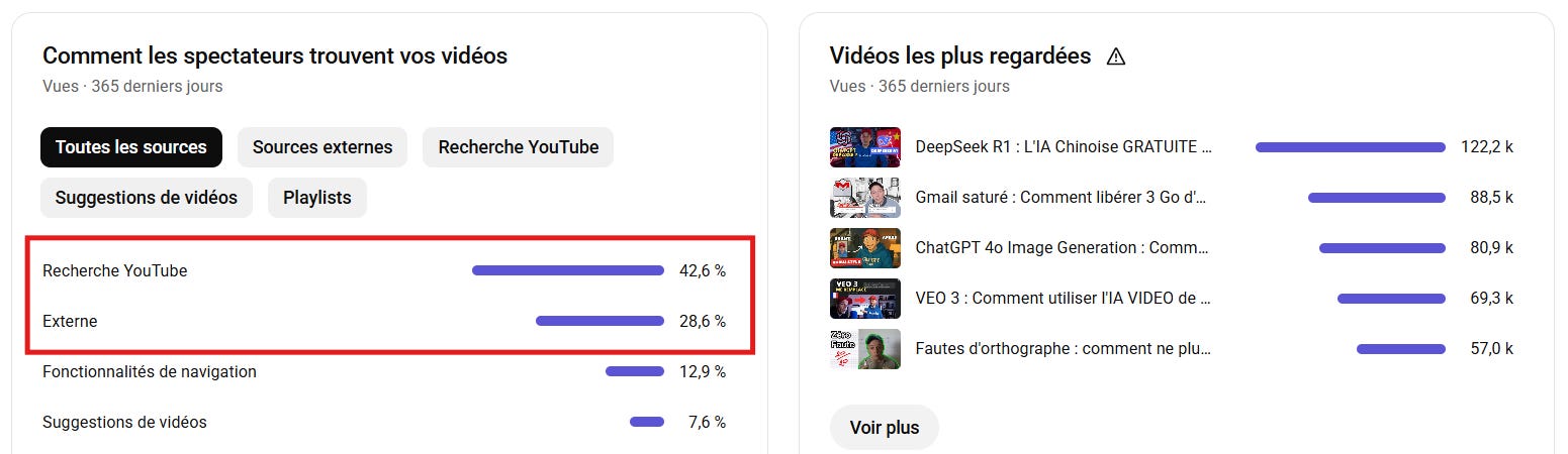 Je me suis dit que ça valait le coup de vous expliquer comment j’avais recyclé mes compétences de SEO pour booster le trafic de mon Substack et de ma chaîne YouTube. Spoiler : vos données de trafic du passé valent de l’or, et c’est en les analysant que vous arriverez, comme moi, à décoller sur YouTube, Google ou ChatGPT.