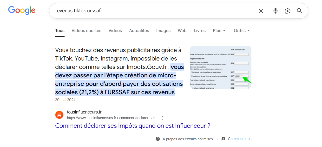 Je suis n°1 sur « revenus tiktok urssaf ».