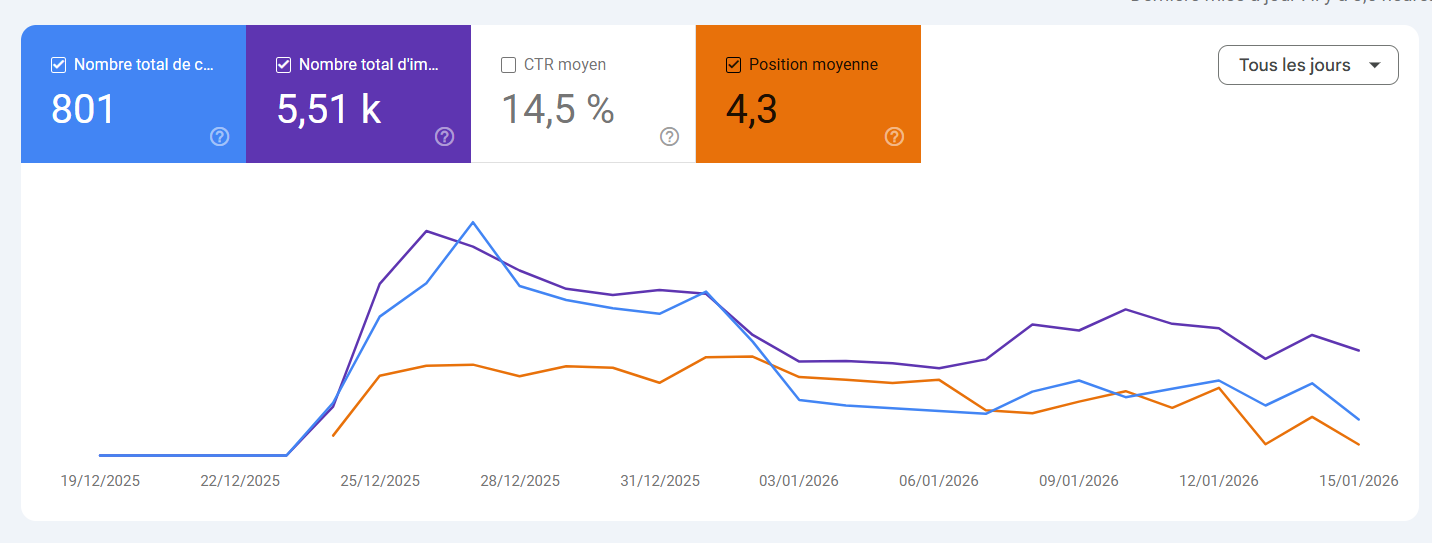 Au lieu de capitaliser sur une URL qui avait acquis de la popularité sur Google (backlinks), on repartait à chaque fois de zéro. Quand on a compris qu’il fallait garder une URL générique sans date et la mettre à jour chaque année avec le nouveau contenu, ça a été le jackpot.